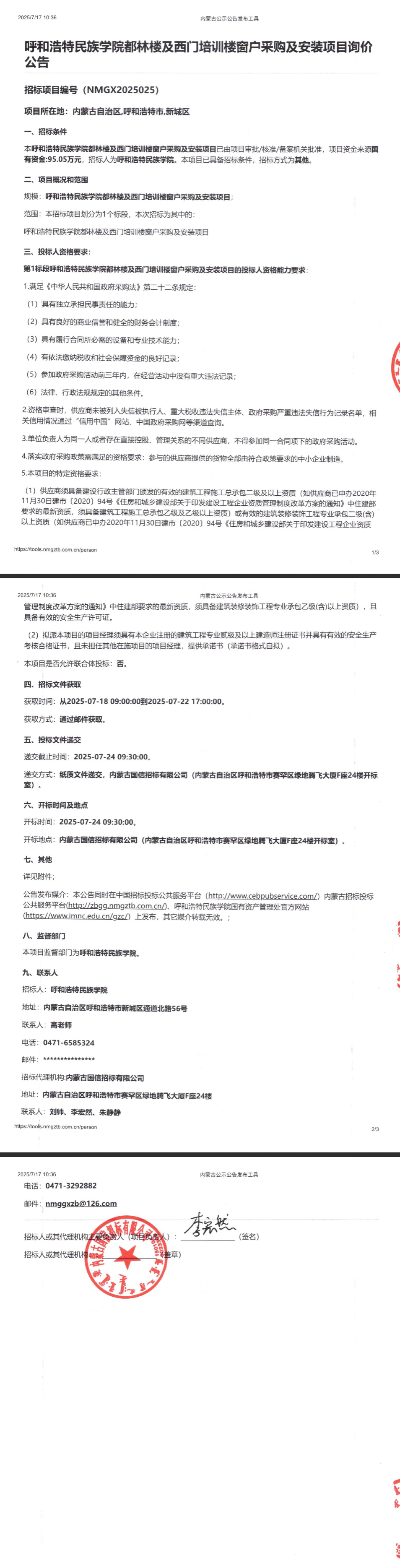 Beat365唯一官方网站都林楼及西门培训楼窗户采购及安装项目招标公告