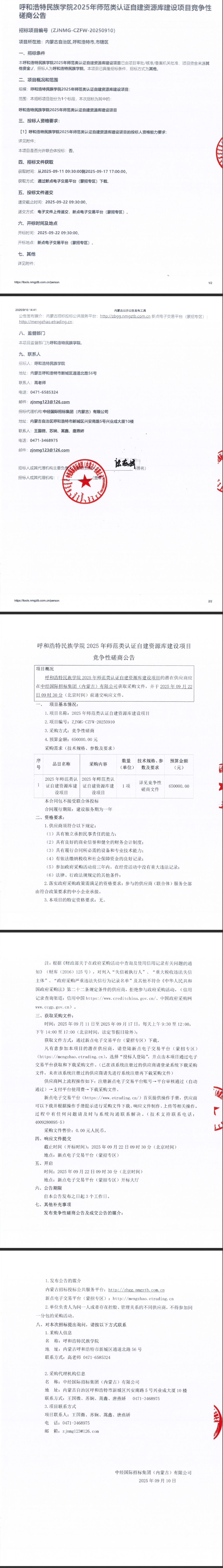 Beat365唯一官方网站2025年师范类认证自建资源库建设项目竞争性磋商公告