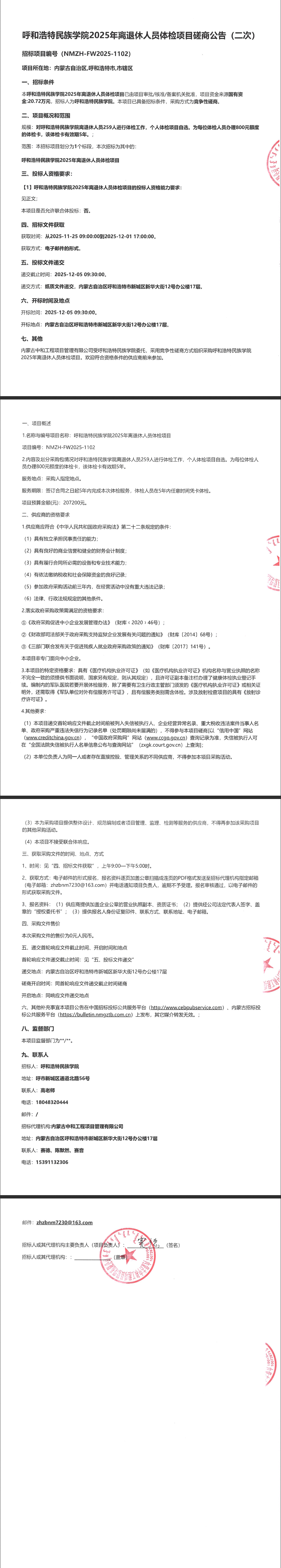 Beat365唯一官方网站2025年离退休人员体检项目磋商公告(二次)