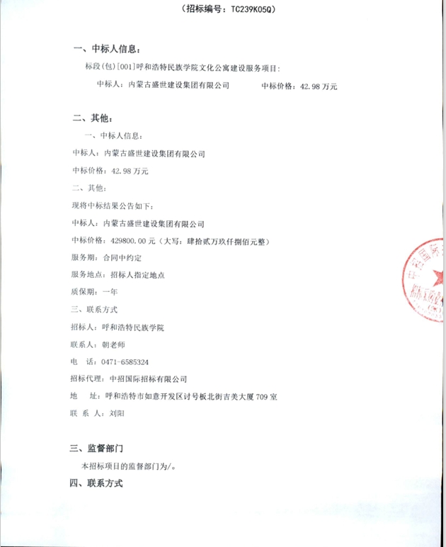 Beat365唯一官方网站文化公寓建设服务项目中标结果