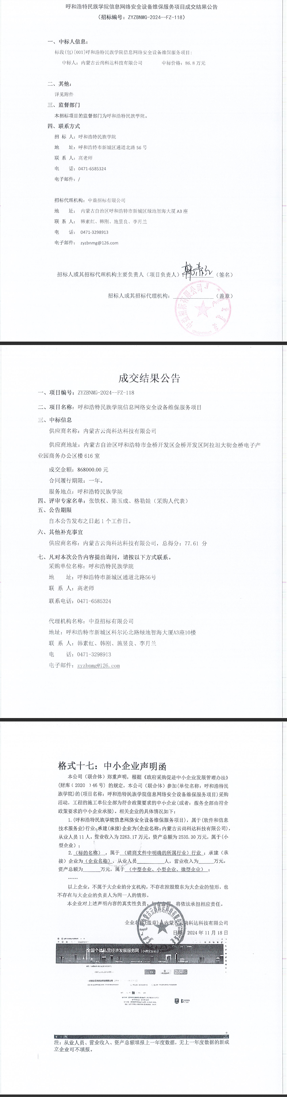 Beat365唯一官方网站信息网络安全设备维保服务项目成交结果公告