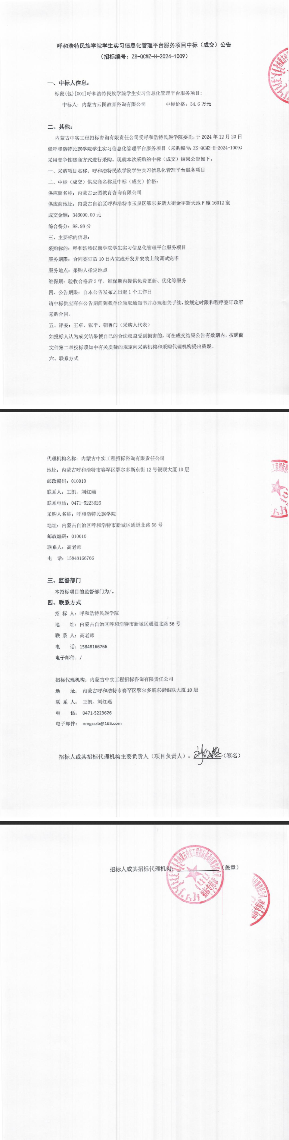 Beat365唯一官方网站学生实习信息化管理平台服务项目中标(成交)公告