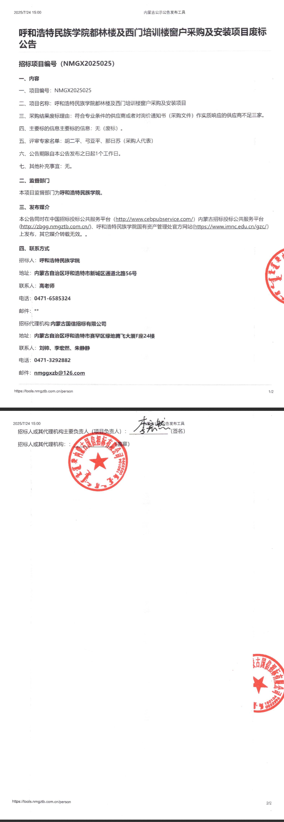 Beat365唯一官方网站都林楼及西门培训楼窗户采购及安装项目废标公告