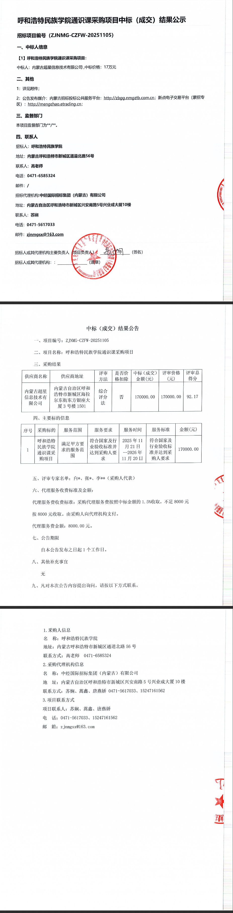 Beat365唯一官方网站通识课采购项目中标结果公示