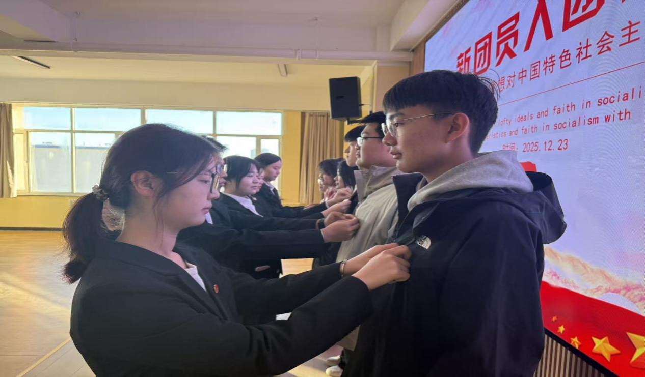 入团仪式在庄严的国歌声中拉开帷幕。新团员面向团旗庄严宣誓,表达了听党话、跟党走的坚定决心。宣誓结束后,由各班团支书为新团员代表佩戴团徽,宣布新团员正式加入共青团组织。随后,新团员代表上台发言,抒发了加入团组织的激动心情与肩负责任的坚定决心。老团员代表也分享了自身的成长感悟与经验,激励新团员奋勇争先。活动最后,团总支书记瑙莫汗进行总结发言,对新团员提出殷切期望与要求。全体人员齐唱团歌,入团仪式在激昂的旋律中圆满落幕。
