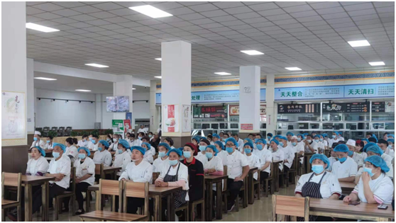 培训老师从原材料粗加工到食品贮存、原料切配、加工烹饪、餐具清洗消毒、食品留样、食品添加剂的使用等等,食品安全关键环节和操作要点、人员管理、食品准入、自查制度的落实等方面,通过丰富典型的案例剖析、实践经验等方式,为员工们深入浅出地讲解了做好学校食品安全工作的重要性进行了详细地指导。结合实际,采用色标管理、五常、6T等食品安全管理方法,提升学校食品安全水平。学校食堂员工和承包委托经营者的食品安全负责人和食品安全管理员共200余人参与此次培训。