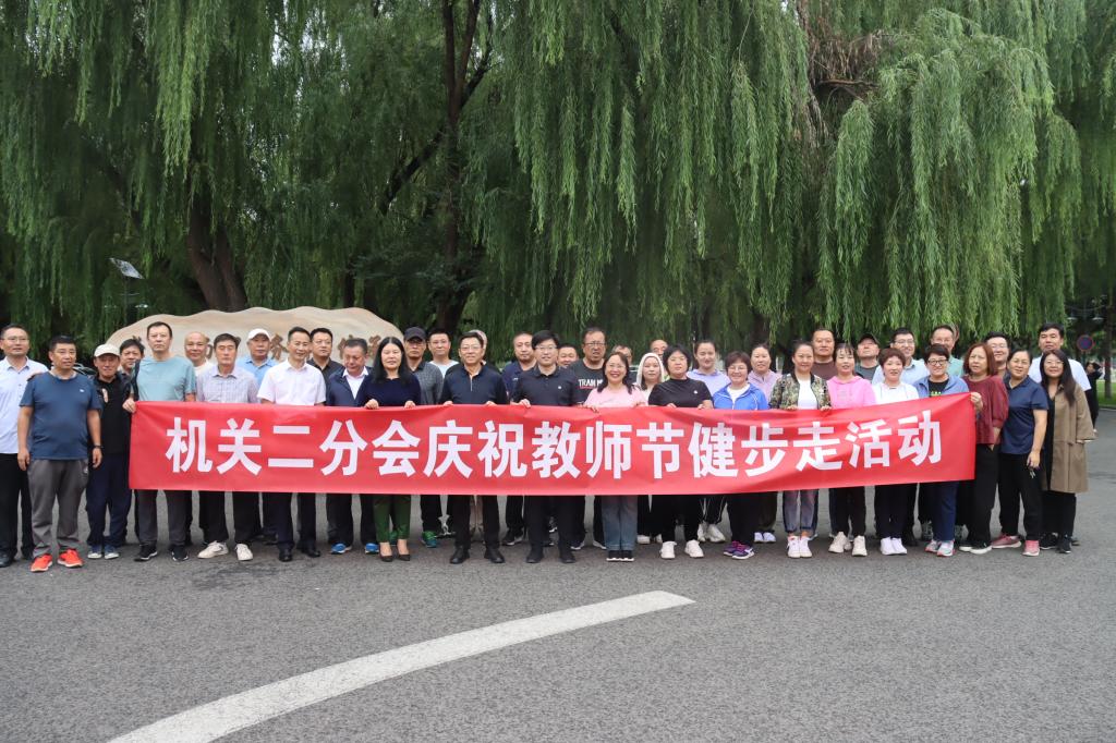 9月8日下午,学校机关党委第二分工会组织教职工开展了庆祝教师节健步走活动。来自机关党委第二分会的60余名教职工参加了此次活动。
