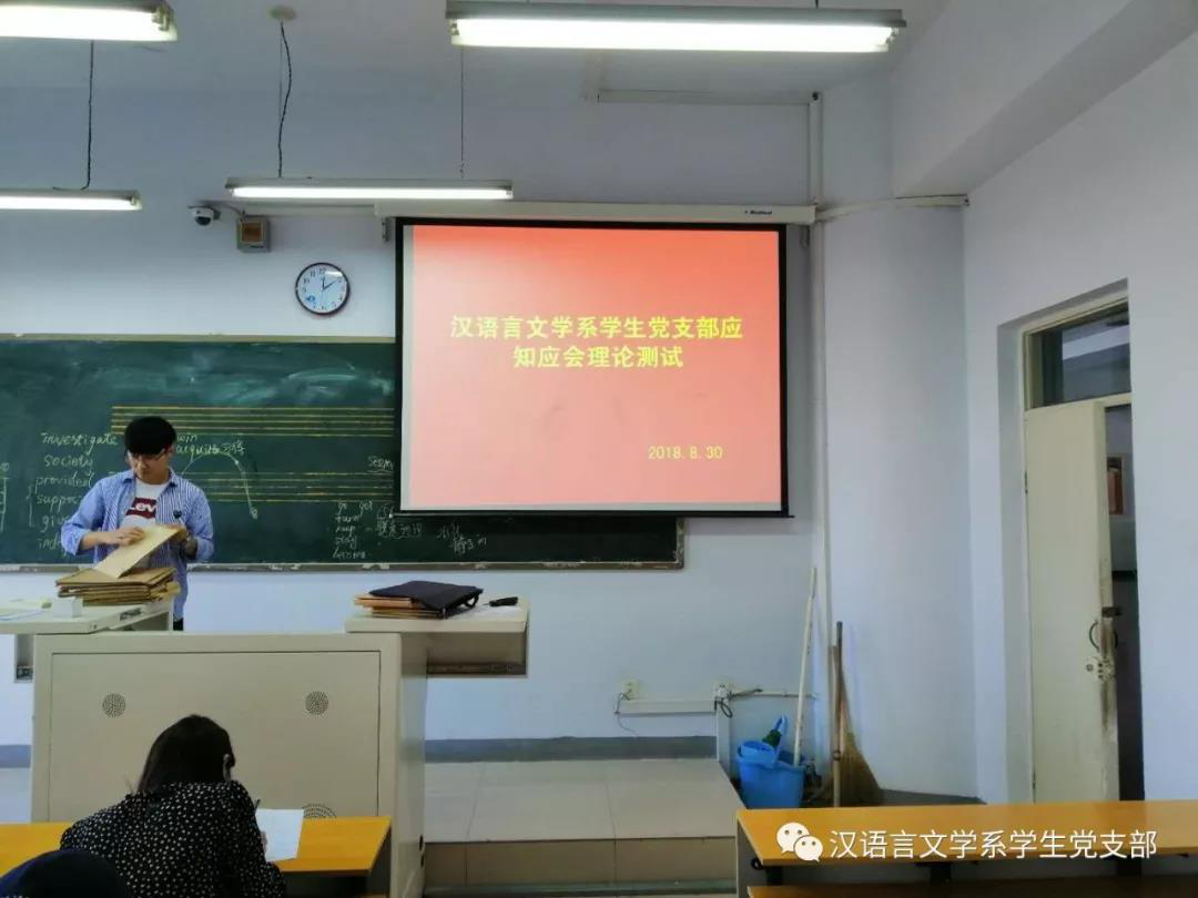为了进一步提高学生党员学习党的理论、方针、政策的积极性和主动性,提高学生党员的理论水平,促进学生党员关心社会,了解国内外形势,进而培养他们的社会责任感,汉语言文学系学生党支部于2018年8月30日在都林楼112教室进行了应知应会理论测试,通过本次测试,一方面可以了解学生党员的理论知识掌握程度,为今后进一步加强学生党员的教育管理提供有效的依据。另一方面,以党建带动学风建设,有利于形成浓厚的学习氛围。
