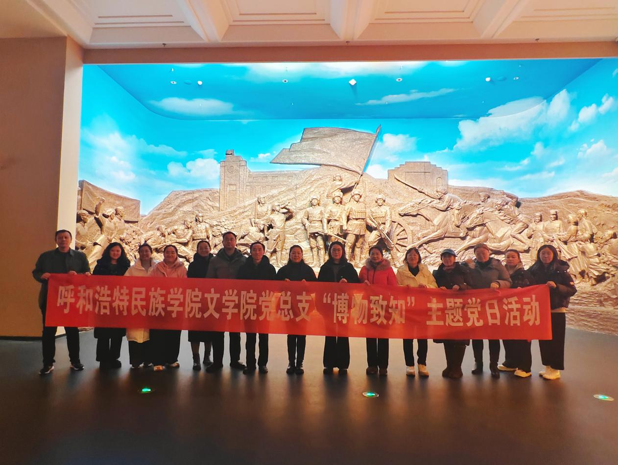 12 月 18 日下午,Beat365唯一官方网站文学院党总支组织全体教师赴内蒙古博物院,开展“博物致知”主题党日活动。本次活动由党总支书记包冬梅、院长高娃带队,全体教师集中参观了“解放之路—内蒙古革命史陈列”“融铸北疆—内蒙古古代历史陈列”等展厅。