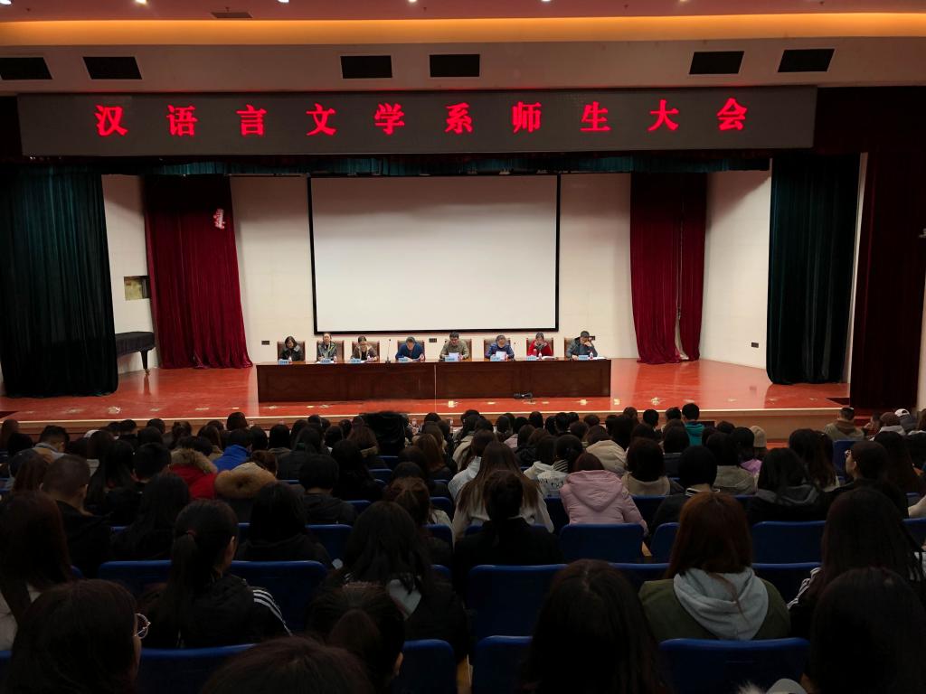 为营造积极的学习氛围,激发学习热情,共同构建良好的学习环境,汉语言文学系于11月15日下午在图书馆二楼报告厅召开加强学风建设大会,共计750名师生参加本次会议。