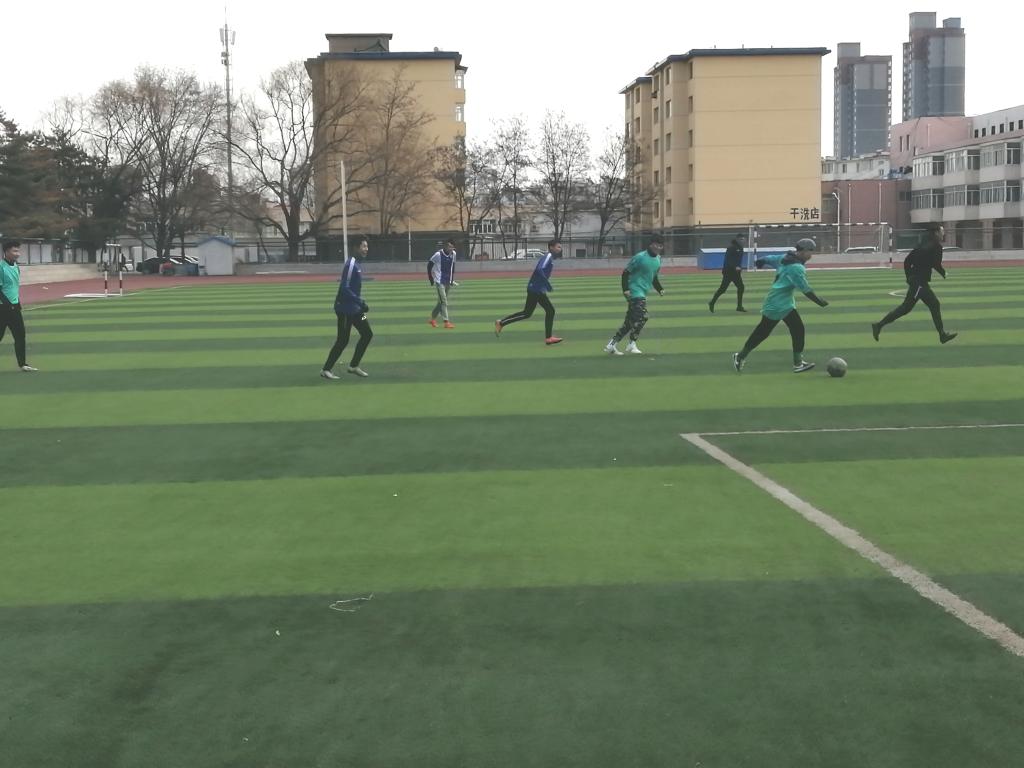 随着裁判员的哨声,比赛正式开始。传球,接球,射门,双方守门员高接低挡,展现出良好的竞技状态。比赛过程异常激烈,上半场国教班以1:0的成绩领先对外一班。在下半场比赛中,对外一班调整防守位置,积极拼抢,连进2球,最终以2:1结束了今天的友谊赛。