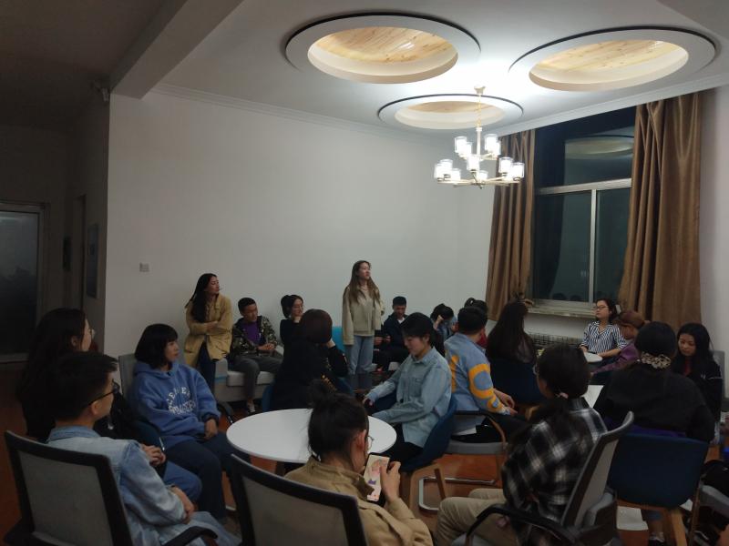 会议首先是自我介绍,大家一起讨论了对学校的第一印象,谈起刚入学时对自己对当地生活的不适应。随后同学们又争先恐后说起自己家乡的民族文化和习俗、饮食习惯和娱乐方式。接着大家玩起了互动游戏,“我记住你的名字”和“无声传递”,让大家更加认识彼此。