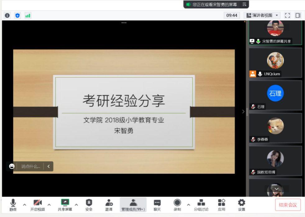 为提高2020级学生的考研积极性,帮助同学们了解考研信息及相关流程,文学院于2023年3月13日晚7:00依托线上平台举办优秀毕业生考研经验分享会,此次分享会共有2020级本科生和2022级专升本160余名的同学们参加。