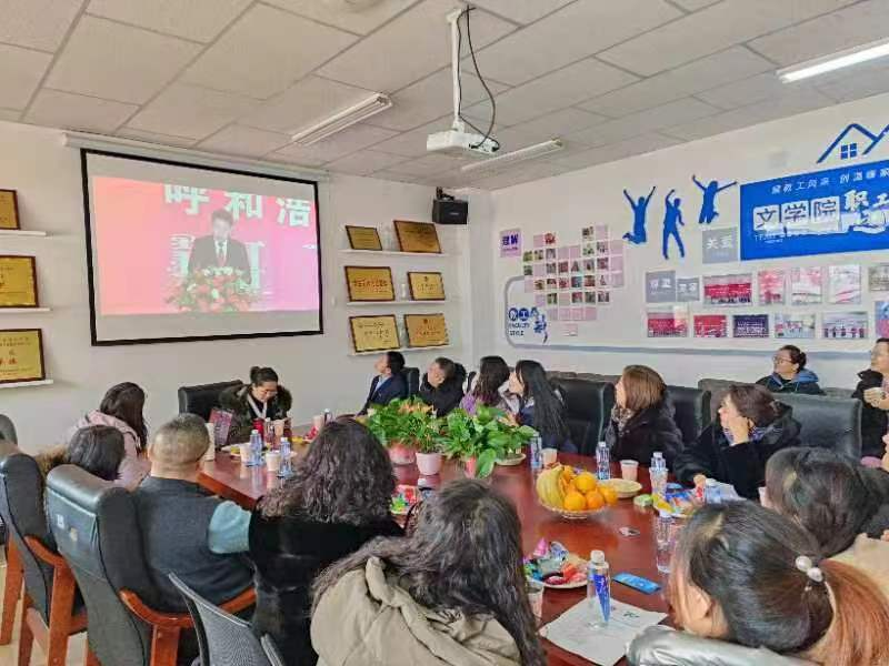 图1文学院全体教职工与校友们一同观看主会场直播
