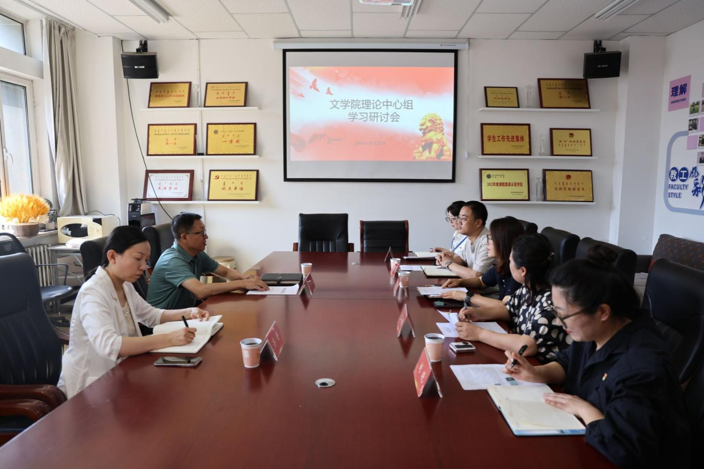 6月27日上午,校党委委员、副校长刘瑞鸿深入文学院,巡听旁听学院党总支理论学习中心组学习会,会议由文学院党总支副书记包冬梅主持。