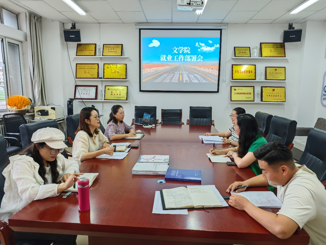 为进一步落实教育部、自治区教育厅“百日冲刺”行动工作要求,扎实做好2024届毕业生就业工作,文学院于7月9日召开就业工作推进会。会议由包冬梅主持,高娃院长及各毕业班班主任参会。