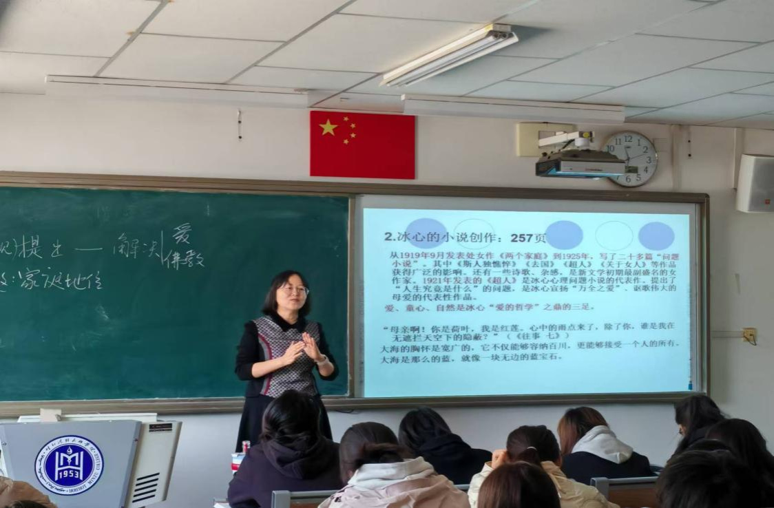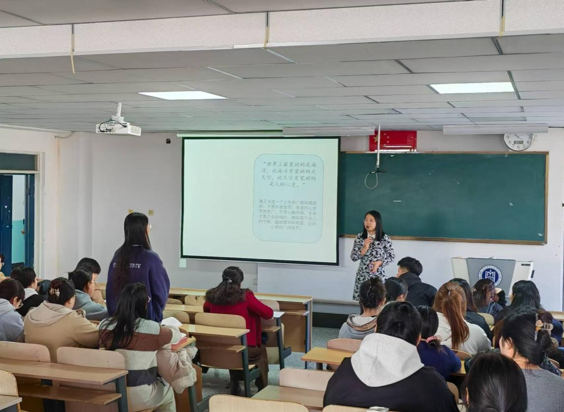 王佳老师的《外国文学》观摩课则以其富有激情的教学风格、新颖的设计理念和丰富的内容互动赢得了在场老师的广泛赞誉。她用新颖的课前导入和作品与热点的链接为切入点,激发学生的关注度和学习兴趣。课堂上,王佳老师注重与学生的互动,设计了学生文学播报等创新环节,提升学生的参与度和表达能力,巧妙地将思政教育融入课程内容,使课堂更加生动有趣。
