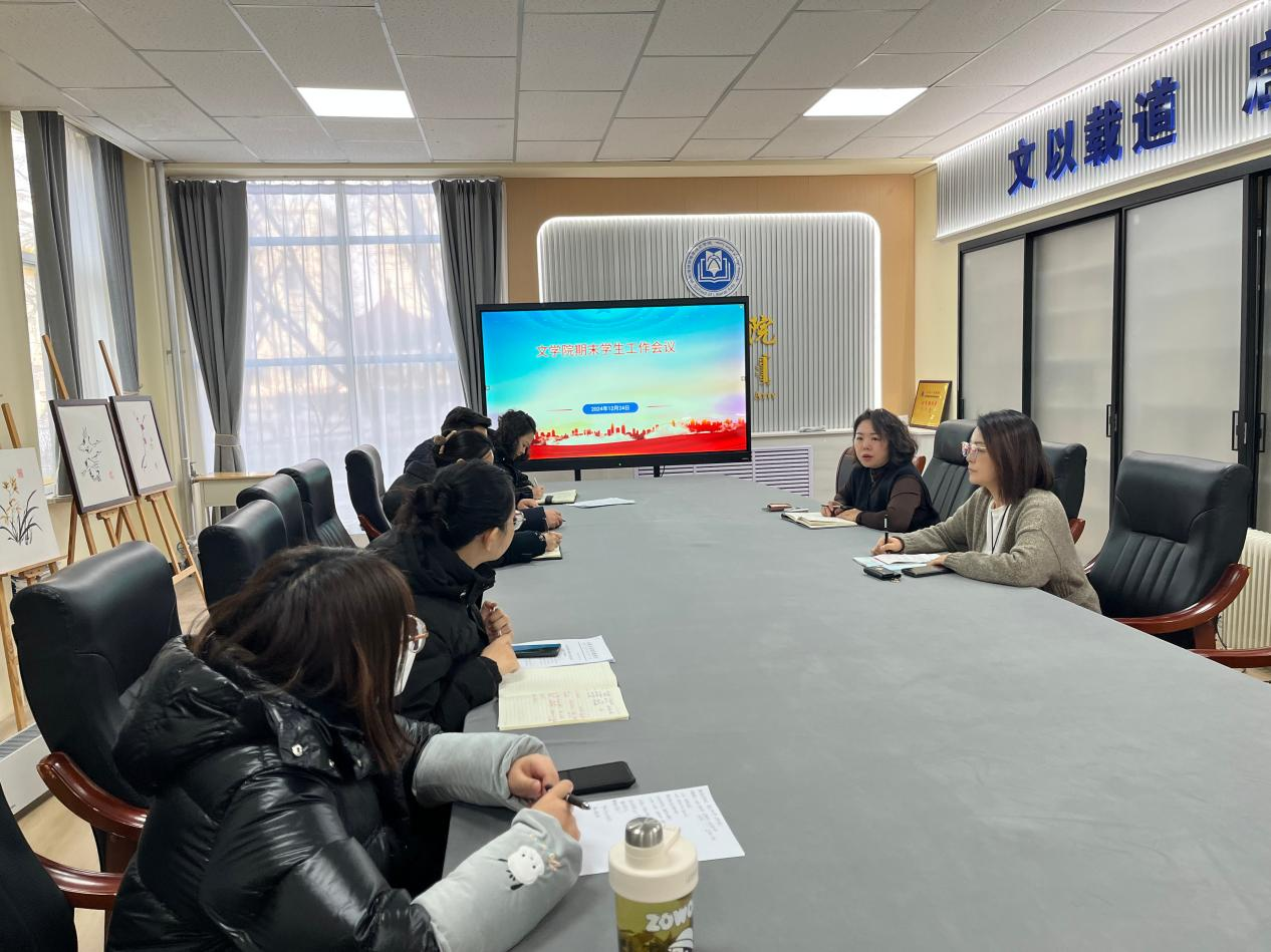 为加强期末学生管理和安全教育,12月24日,文学院召开期末学生工作会议,会议由文学院党总支副书记包冬梅主持,高娃院长、各班班主任及辅导员参加会议。
