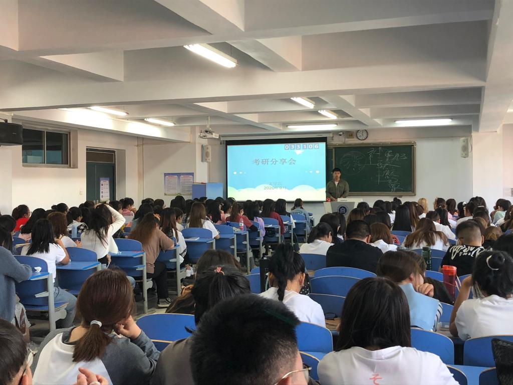 2020年9月,文学院在都林楼406教室举办考研分享会。 邀请了我院2016级小学教育3班毕业生赵赫冉、田米雪为2018级小学教育专业的学生进行考研经验分享。
