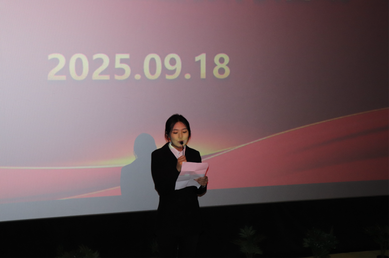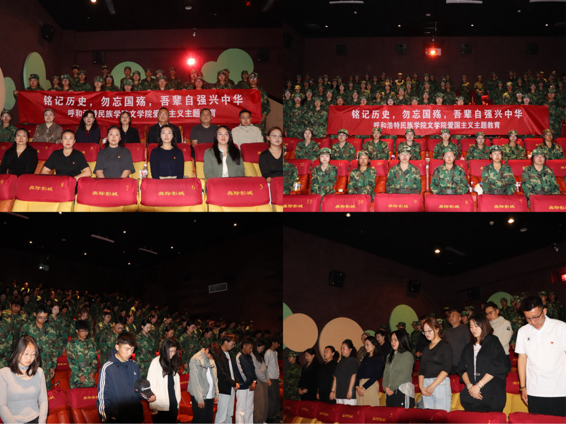 当日,身着整齐军训服的大一新生,与带队教师、学生会成员一道,徒步前往电影院,以这种特别的方式表达对历史的敬重。电影开始前,团总支书记刘晓老师、学生代表包达日罕发表演讲,回顾了“九一八”事变的经过和历史意义,发出“铭记历史,勿忘国殇,吾辈自强兴中华”的号召,随后,全体师生共同默哀一分钟,向在抗日战争中牺牲的先烈和遇难同胞致以深切哀悼。