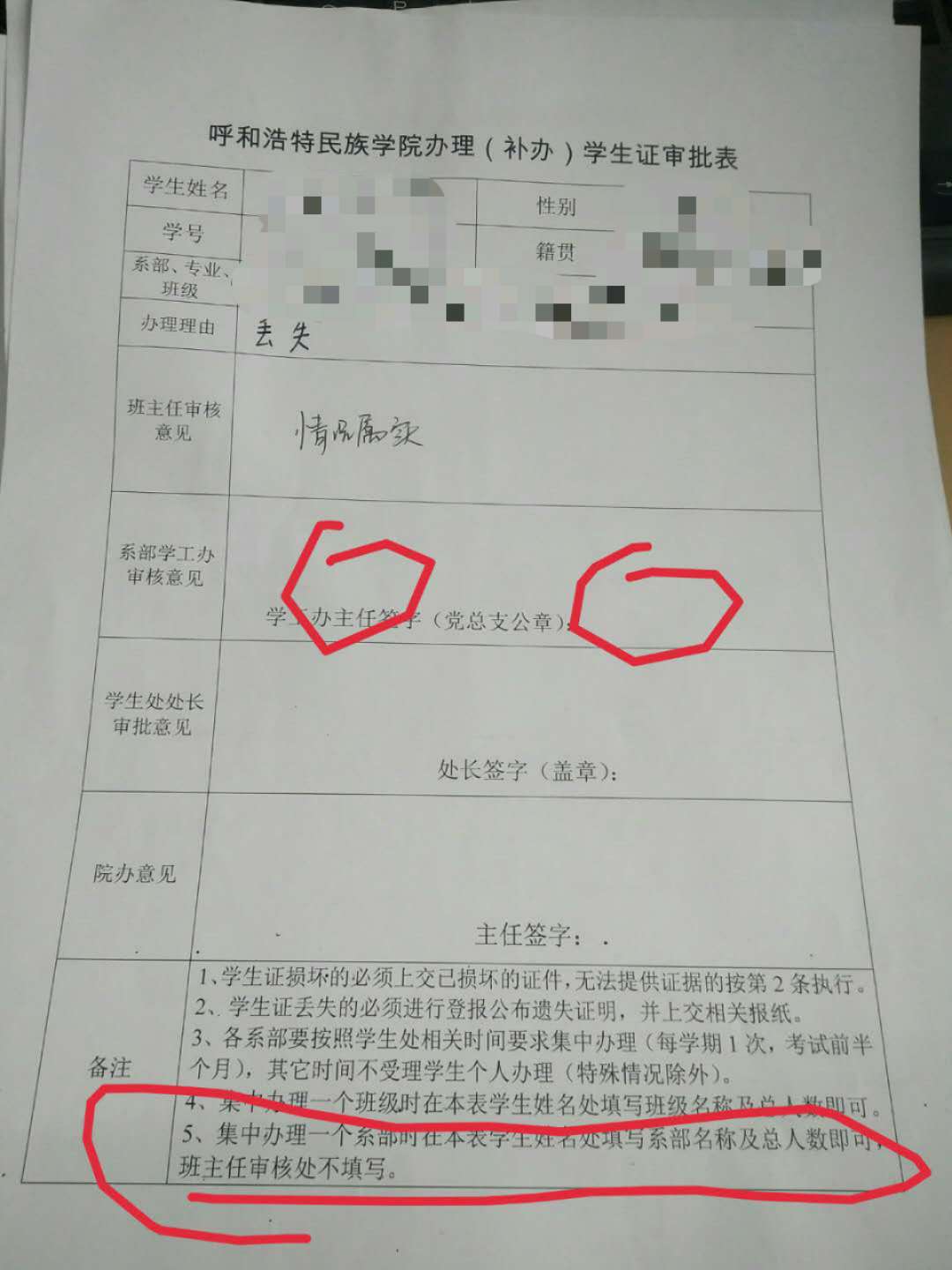若以班级或者年级为单位补办请参照表中附注内容。
