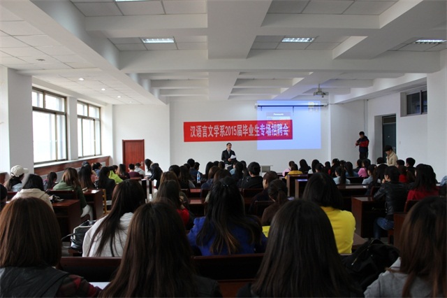为了更好地扩展汉语言文学系毕业生的就业渠道,4月1日上午,汉语言文学系在新教楼116教室召开了毕业生专场招聘会,汉文系党总支书记赛音图、系团总支副书记张子涵及2012级100余名同学参加了本次招聘会。