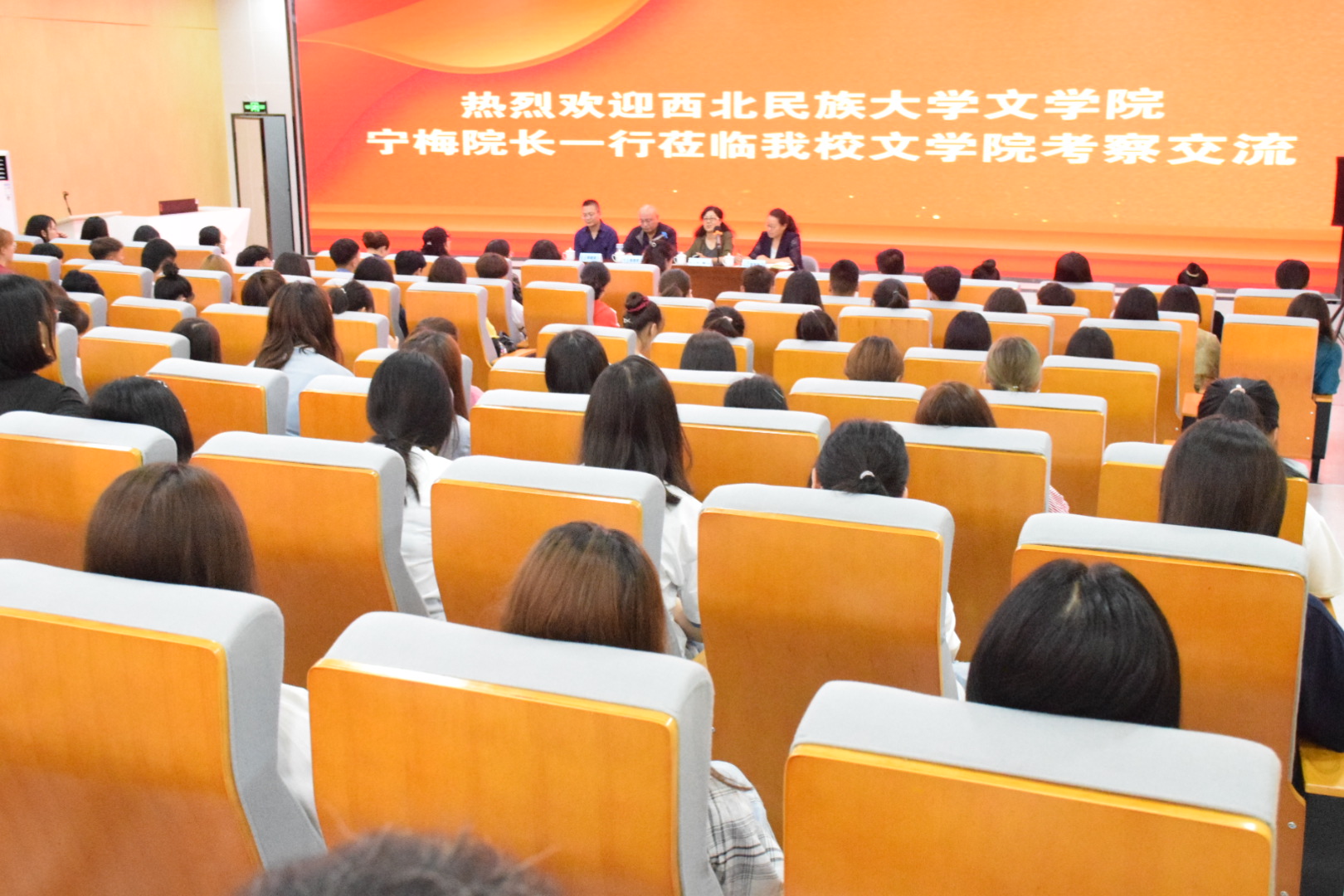 宣讲会上,宁梅教授介绍了西北民族大学的发展历程和文学学院相关专业的师资力量、科研成果等情况。宁梅教授表示,近年来,西北民族大学硕博招生人数不断增加,为国家培养了一批高层次人才,希望同学们对自己的未来有清晰的规划,进一步考研深造,做到终身学习,学以致用。多洛肯教授介绍了西北民族大学的学科建设和科研成果概况。他说,西北民族大学拥有良好的学术氛围和成熟的学术体系,是读研究生的理想高校之一。韩晓清教授重点介绍了西北民族大学良好的人文环境和优厚的硕博待遇,优秀博士后毕业后,拥有留校任教的机会和优厚的待遇,并具有良好的科研环境。宁梅教授、多洛肯教授、韩晓清教授向学生们发出诚挚的邀请:欢迎大家报考西北民族大学汉语言文学学院和其他学院的硕士、博士研究生。