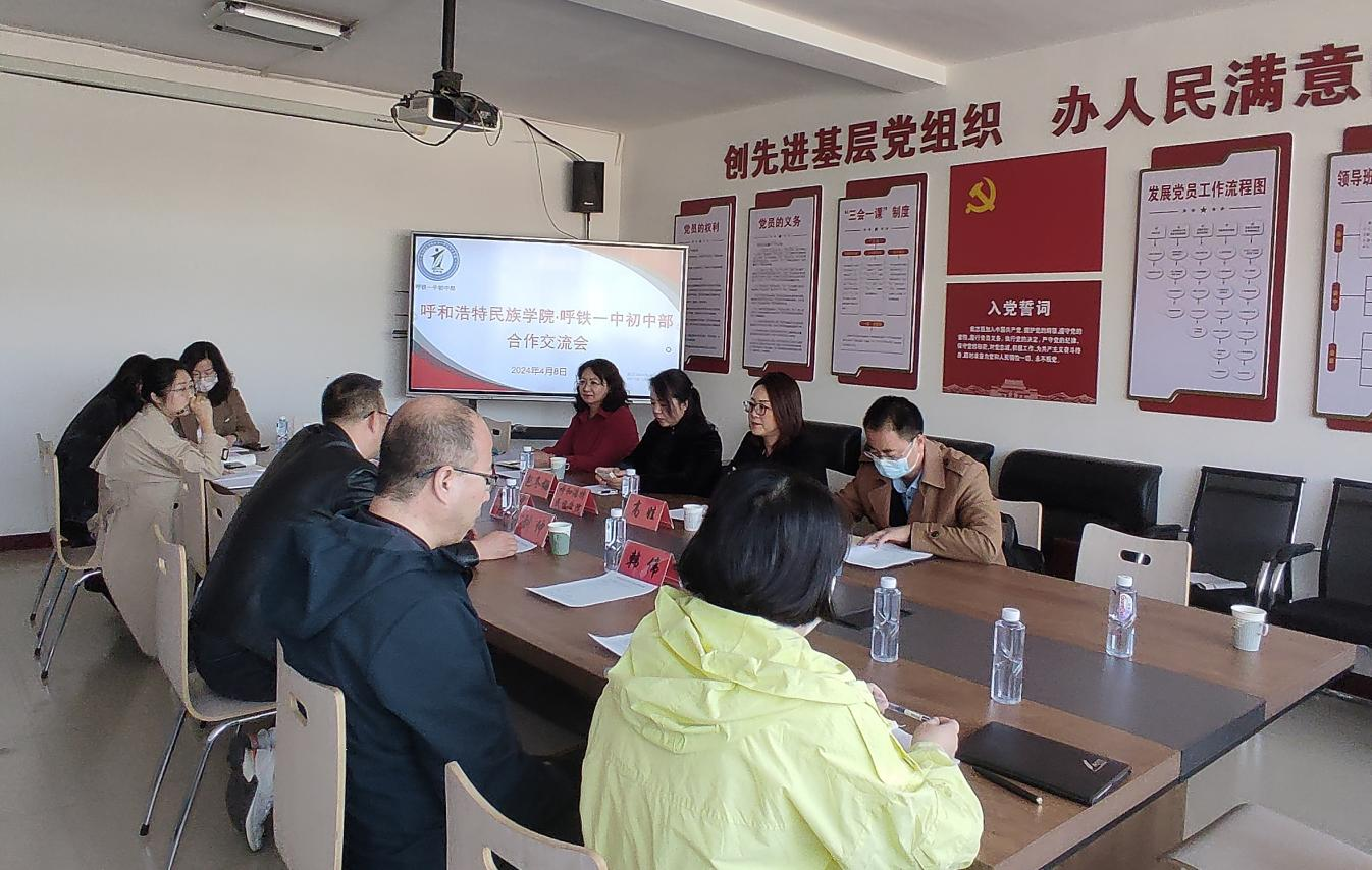 为更好地了解学生见习情况与实际效果,文学院高娃院长、包冬梅副书记等一行五人深入实践教学基地呼市铁一中初中部进行调研,座谈会由呼市铁一中初中部校长刘仲主持,该校党支部副书记、副校长、教务主任、学术委员会负责人、教务副主任、语文调研组组长、各年级备课组长参会。
