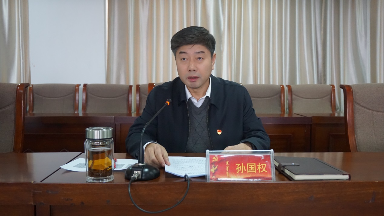 孙国权书记表示,主题教育即将告一段落,但是,全面从严治党永远在路上,我们党不忘初心、牢记使命的实践仍在持续,并需要不断深化、不断巩固、不断践行。2020年是决胜全面建成小康社会、打赢精准脱贫攻坚战、实现“十三五”规划收官之年,也是学校事业发展的关键之年,我们要大力发扬吃苦耐劳,一往无前,不达目的绝不罢休的蒙古马精神,只争朝夕、不负韶华,担当作为、奋勇争先,以扎扎实实的工作,奋力推动学校高质量发展,为实现两个一百年奋斗目标,建设亮丽内蒙古、共圆伟大中国梦做出应有贡献!