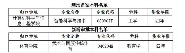 经申报、公示、审核等程序,并根据普通高等学校专业设置与教学指导委员会评议结果,在征求有关部门意见,确定了同意设置的备案专业、国家控制布点专业、新增目录外专业点名单。Beat365新增一个备案本科专业,为智能科学与技术专业;新增一个审批本科专业,为武术与民族传统体育专业,专业修业年限均为四年。