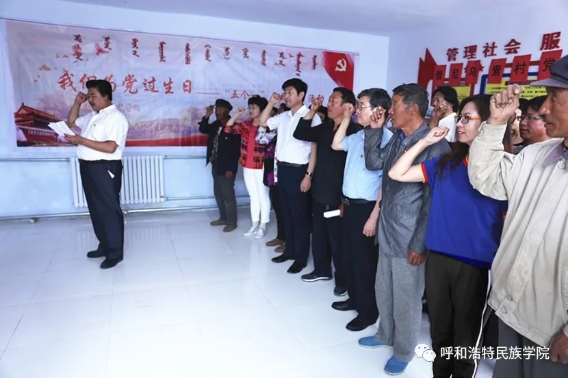 学校乌兰牧骑临时党支部与昔尼乌素村党支部重温入党誓词