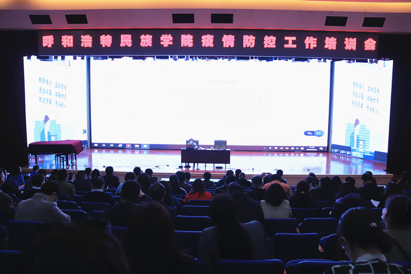 为全面做好学校开学前后疫情防控工作,根据学校《开学前后防控新冠肺炎疫情应急预案》,4月28日上午,学校邀请呼和浩特市新城区疾病预防控制中心防疫科主任徐良文在图书馆二楼报告厅举办了疫情防控工作培训讲座。各学院书记、院长、班主任、辅导员,各部门负责人,学工部、保卫处、后勤管理处全体人员参加了培训会。会议由医务所所长刘晋雯主持。
