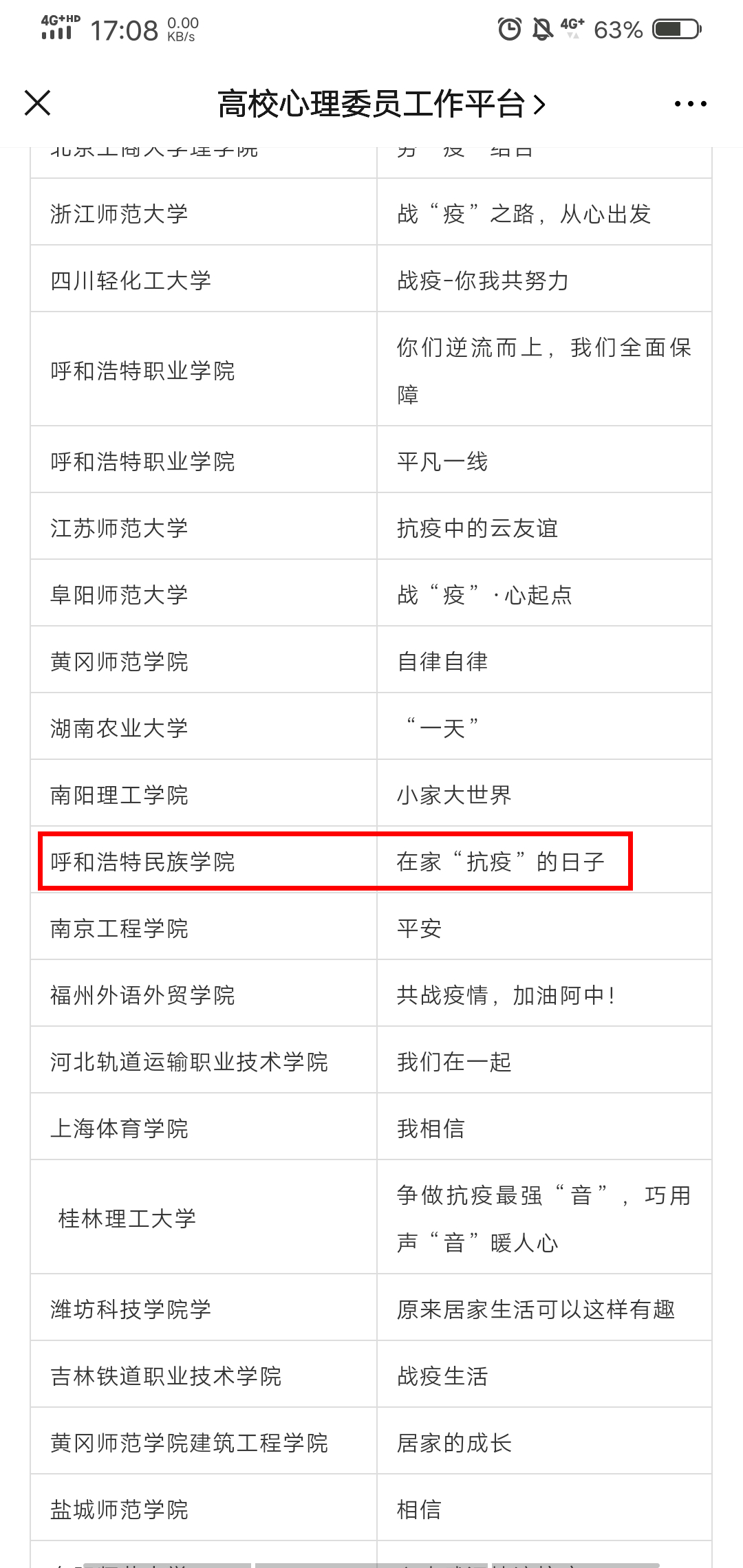 Beat365学生工作部积极组织各二级学院参与活动。该活动经过中国心理学会心理危机干预工作委员会专家、全国高校心理委员研究协作组理事们的精心评审。Beat365《战“疫”舞动》、《“武”所畏惧,共盼春来》、《在家“抗疫”的日子》、《我与战“疫”同在》四部作品入选优秀作品。