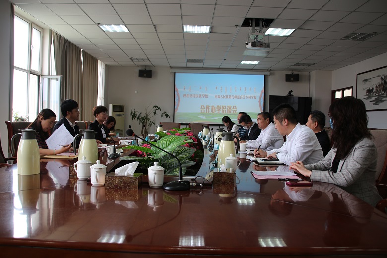 双方就合作办学工作召开了座谈会,校长格日乐图同志主持会议,党委委员、副校长贺希格吉雅及党政办公室、教务处、就业指导处、财务处负责同志参加会议。格日乐图校长、张宝成校长分别介绍了各自学校的发展历程、学科专业设置、师资队伍建设、人才培养等情况,双方就两校的合作办学事宜进行了交流,签署了2020年跨校选拔专升本学生的合作办学框架协议。格日乐图校长表示希望两校开展更广泛的合作交流,共同为自治区民族教育事业的发展做出自己的贡献。
