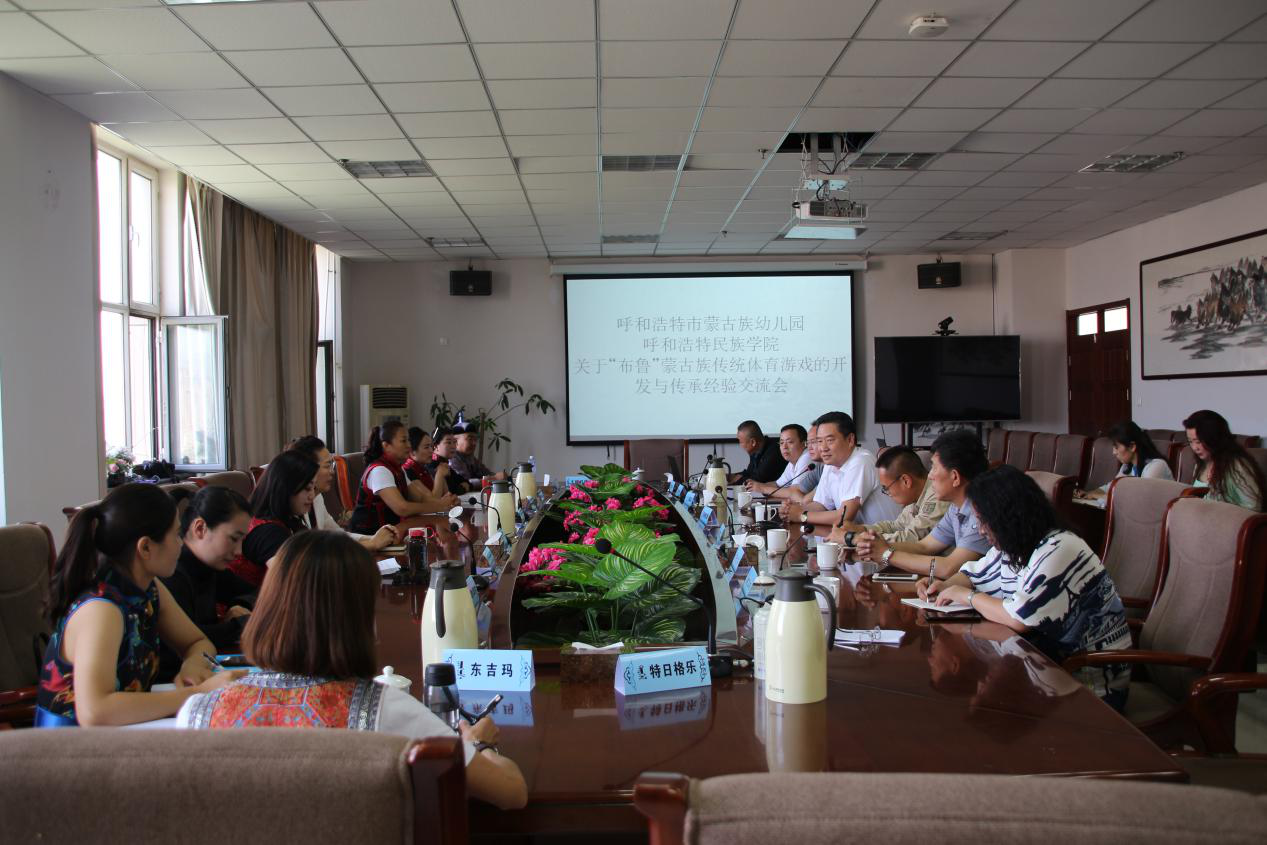6月5日上午,呼和浩特市蒙古族幼儿园格日乐书记、吴海棠园长一行12人来Beat365就民族传统体育项目布鲁进行调研交流。学校党委委员、副校长贺希格吉雅出席,相关部门和二级学院负责同志参加了调研座谈会。