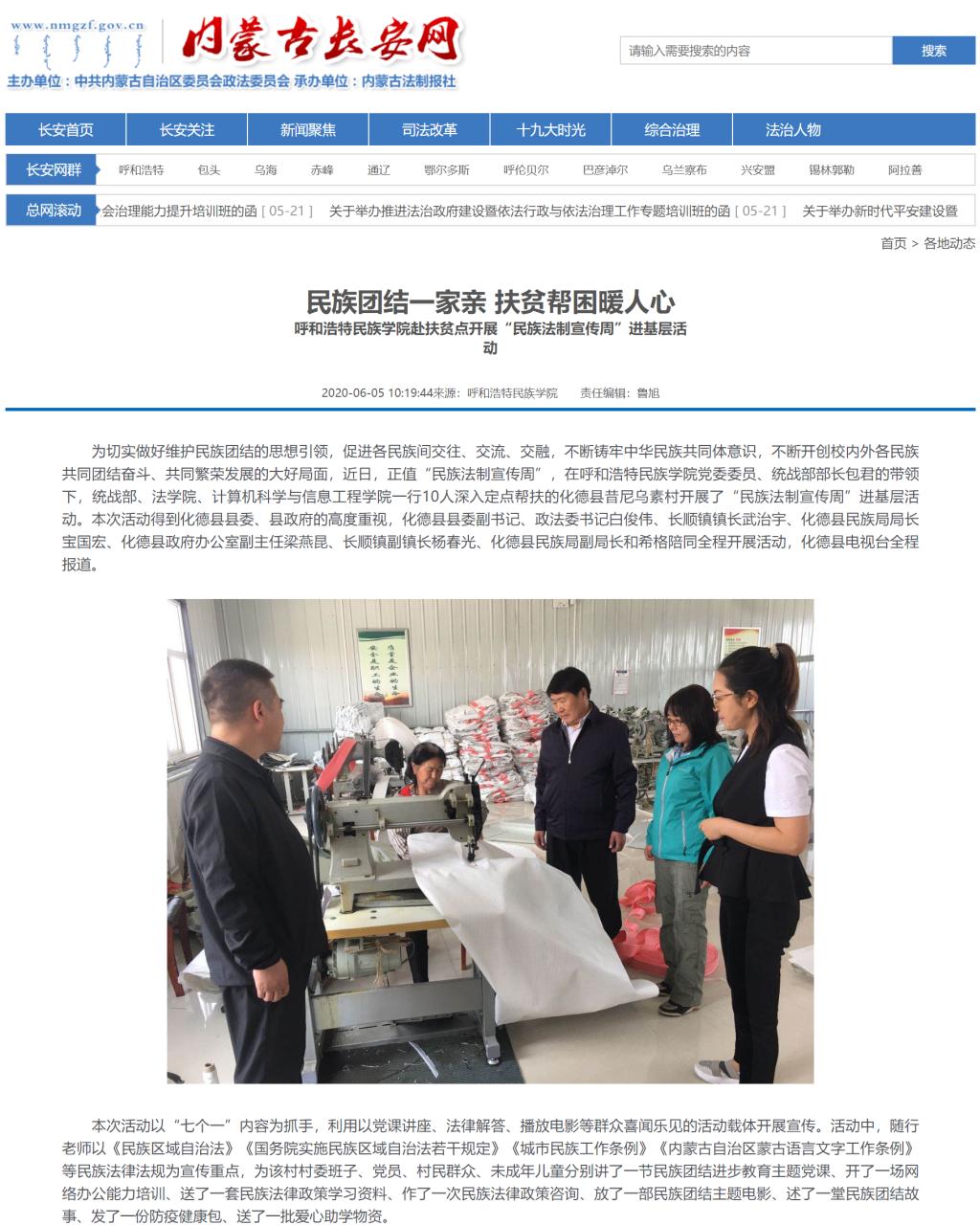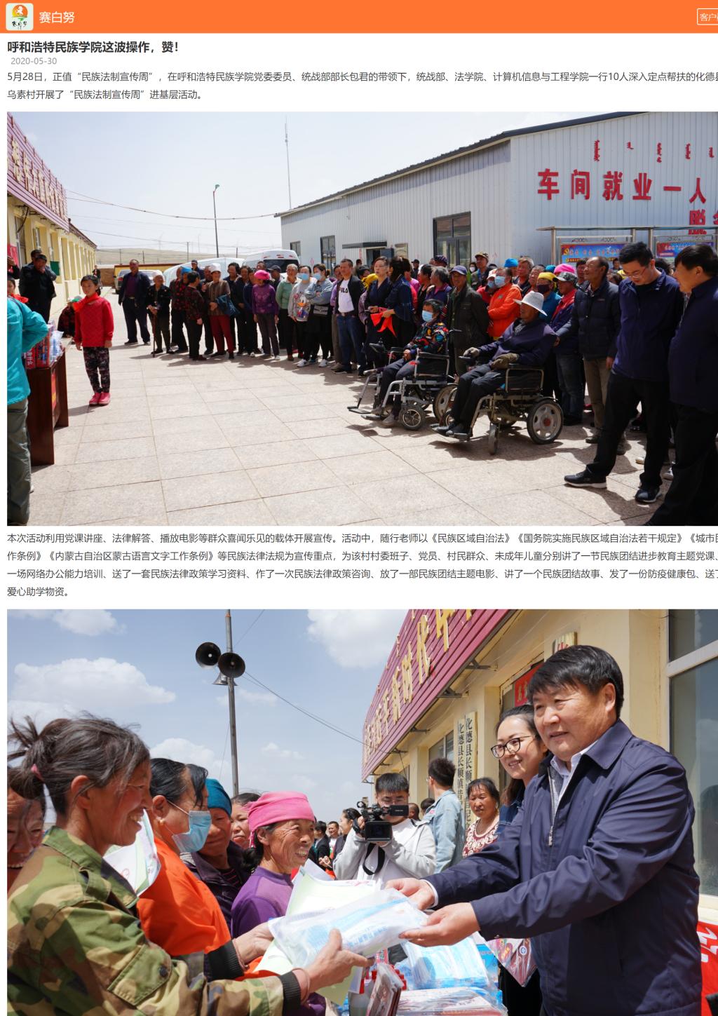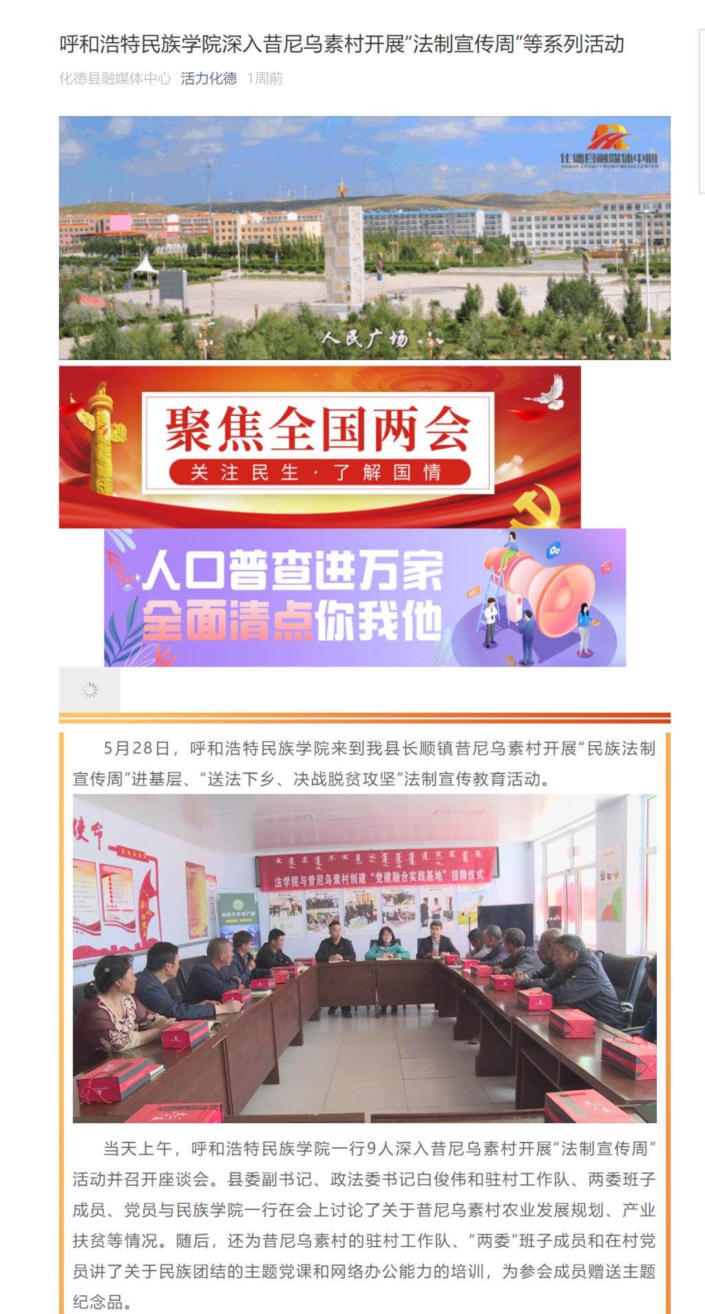 自“民族法制宣传周”活动开展以来,Beat365唯一官方网站党委统战部带领相关二级学院深入化德县昔尼乌素村开展的“民族法制宣传周”进基层活动因内容丰富、效果良好,引发了人民网、中国新闻网、内蒙古日报、呼和浩特晚报、内蒙古广播电台、内蒙古电视台、正北方网(北方新报主办)、赛白努App(内蒙古日报社主办)、长安网(内蒙古法制报社承办)、Monggol App(内蒙古日报社主办)、化德县电视台、活力化德等12家区内外各级主流媒体的广泛报道,覆盖了报纸、电视台、新媒体、客户端、广播电台、网站等多种宣传媒介。