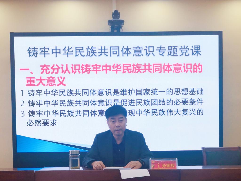 孙书记的党课以《铸牢中华民族共同体意识,奋力打造民族团结进步模范之地》为题,系统讲授了充分认识铸牢中华民族共同体意识的重大意义、全面理解和把握中华民族共同体深刻内涵、切实强化铸牢中华民族共同体意识的责任感使命感三个方面的内容。