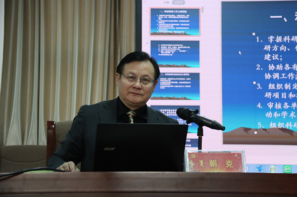 朝克研究员从如何加强高层次人才培养、科研团队建设和科研管理工作主要职能、主要内容等做了专题讲座;他重点介绍了中国社科院高水平科研成果培育以及科研管理等方面的好经验和好做法。讲座后,朝克研究员就教师们关心的问题与大家进行了交流。