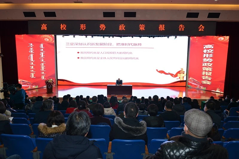 报告会在学校图书馆二楼报告厅举行。报告厅里,一张张朝气蓬勃的面孔,洋溢着青春的气息。杨伟东部长围绕从党的十九届五中全会精神中把握国之大者、从党中央赋予内蒙古的战略定位中准确认知区情、从建设亮丽内蒙古的新征程中找准人生航向三个方面,深入解读了党的十九届五中全会提出的新思想新观点新论断,详细介绍了习近平总书记为内蒙古量身定制的行动纲领,为同学们作了一场生动而深刻的形势政策报告。