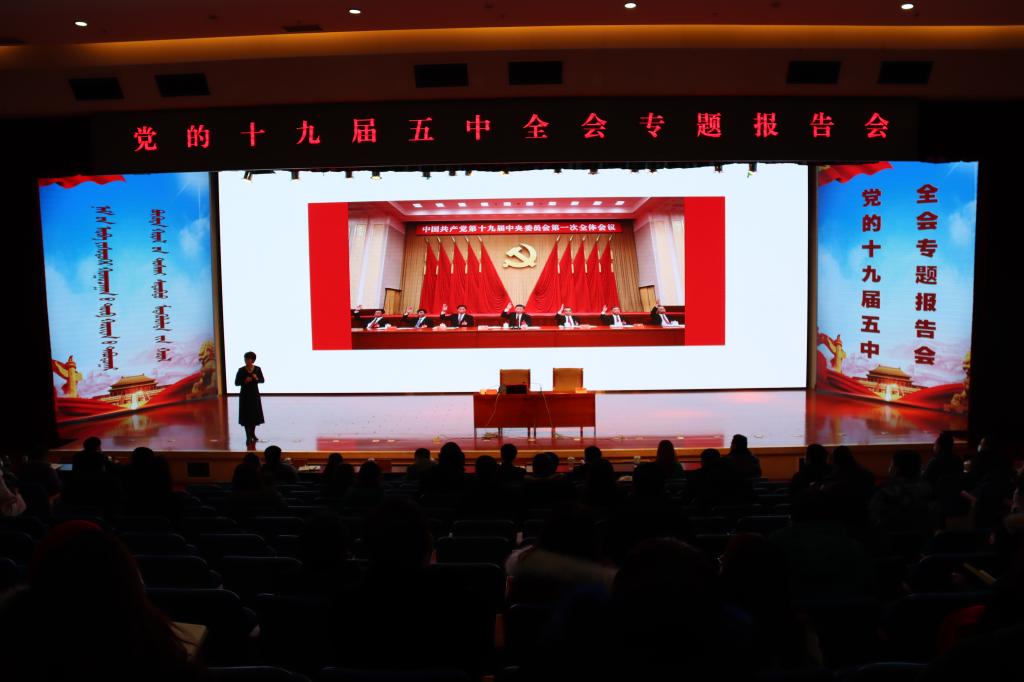 为了认真落实高校工委《关于印发<全区教育系统学习宣传贯彻党的十九届五中全会精神的方案>的通知》精神,按照学校党委的安排,Beat365于1月9日下午,在图书馆二楼报告厅召开了党的十九届五中全会专题报告会暨中心组扩大学习会。学校邀请内蒙古师范大学党委宣传部部长、马克思主义学院院长李春晖教授作了题为《擘画新蓝图,开启新征程》的辅导报告。学校党委中心组全体成员、副处以上干部、全校党员教职工共计320余人聆听报告。报告会由学校党委委员、宣传部部长王玉玲主持。