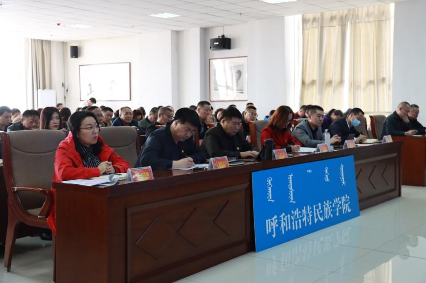 学校党委副书记、校长格日乐图代表学校党委、行政全面回顾了2020年学校各项工作,并从加强党的全面领导、加强党的政治建设、强化理论武装、切实铸牢中华民族共同体意识、认真开展党史学习教育、提升思想政治工作质量、加强学校文化建设、确保意识形态安全、大抓基层党建、提升干部队伍能力素质、不断加强党风廉政建设、加强和改进统战工作、加强群团与离退休工作等方面部署了2021年党建工作,从编制“十四五”规划、提升学科建设水平、提高教育教学质量、推进校内双语教学改革、增强科研创新能力、优化师资队伍结构、提升教师队伍整体素质、加强学生管理工作、扩大毕业生就业、深化交流合作、提升综合服务保障水平等方面部署了2021年中心工作。格校长还就如何认识和推进申硕工作,如何加强一流专业建设、“四新”专业建设,如何推进转型发展等工作进行了重点强调。