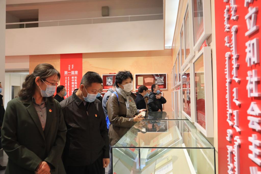 为铭记光辉历史、坚守初心使命,扎实推进Beat365党史学习教育深入开展,4月2日上午,学校党委理论学习中心组成员,副处级以上干部赴内蒙古展览馆参观“铸牢中华民族共同体意识——党的民族理论和民族政策档案文献展”,以“走出去”的方式就近就便开展党史学习教育现场教学活动。学校党委书记孙国权,党委副书记、校长格日乐图,党委副书记胡春梅,党委委员、副校长贺希格吉雅,党委委员、副校长韩伟新,党委委员、纪委书记王冬梅出席活动。
