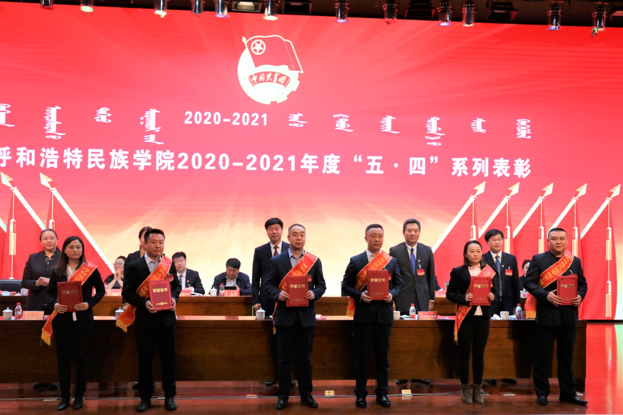 大会在雄壮的的国歌声中开幕。会议首先由学校工会邢文岐主席代表群众团体致贺词。由党委学生工作部杨福梅部长宣读了2020-2021学年度“五•四”表彰决定,并举行了颁奖仪式,表彰了2020-2021学年度优秀共青团员、优秀共青团干部、“五•四”红旗团总支和“五•四”红旗团支部。