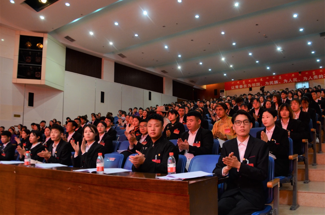 开幕式后,召开了第一次全体会议,由校团委书记苏伦高娃同志代表共青团Beat365唯一官方网站第三届委员会向大会作了题为《高举中国特色社会主义伟大旗帜,团结带领全校各族团员青年为建设特色鲜明的应用型民族院校而努力奋斗》的工作报告,报告回顾和总结了Beat365各级团组织取得的成绩和经验,明确了今后五年学校共青团工作思路。赵昕蕊同学代表校学生会作了题为《砥砺前行传薪火,锐意进取绘新篇,团结带领民院广大学子为建设特色鲜明的应用型民族院校贡献青春力量》的工作报告。