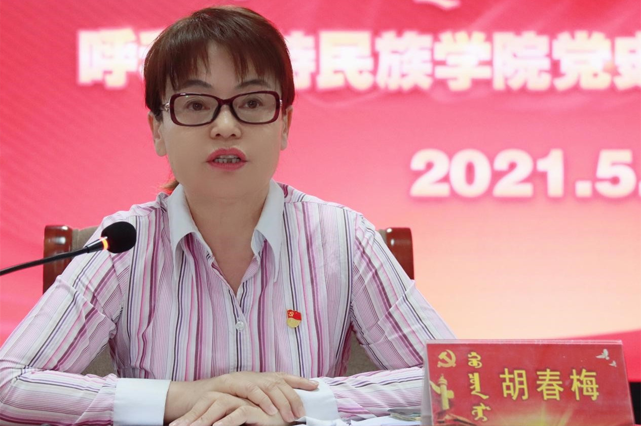 学校党委副书记胡春梅从“牢牢抓住学习这个基础,做到‘两个确保’;紧盯‘办实事’为落脚点,用心用情用力解决师生‘急难愁盼’问题;加强宣传宣讲,营造知史爱党、知史爱国的浓厚校园氛围;突出铸牢中华民族共同体意识专题教育与党史学习教育相结合,打造特色亮点;压实政治责任,加强组织领导,强化督促指导,推进党史学习教育制度化规范化运行。”等五个方面对前一阶段学校党史学习教育工作进行了总结回顾的同时提出了存在的问题,并对下一阶段党史学习教育工作进行了再安排、再部署。