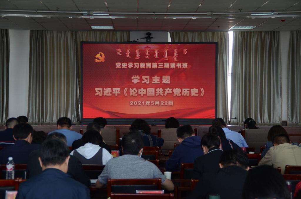 按照学校党委党史学习教育安排,5月22日上午,学校在综合楼12楼“党史学习教育读书室”举办了党史学习教育第三期读书班。校领导、副处级以上领导干部共100余人参加了读书班。 读书班利用96分钟的时间,通过“学习强国”平台“党史学习教育”音频资料,集中聆听学习了习近平《论中国共产党历史(2020)》。通过学习,大家更加清楚地认识到党的历史使命,在灵魂深处进一步厚植了爱国爱党情怀,凝聚了开拓进取,继往开来的勇气,信心和力量。