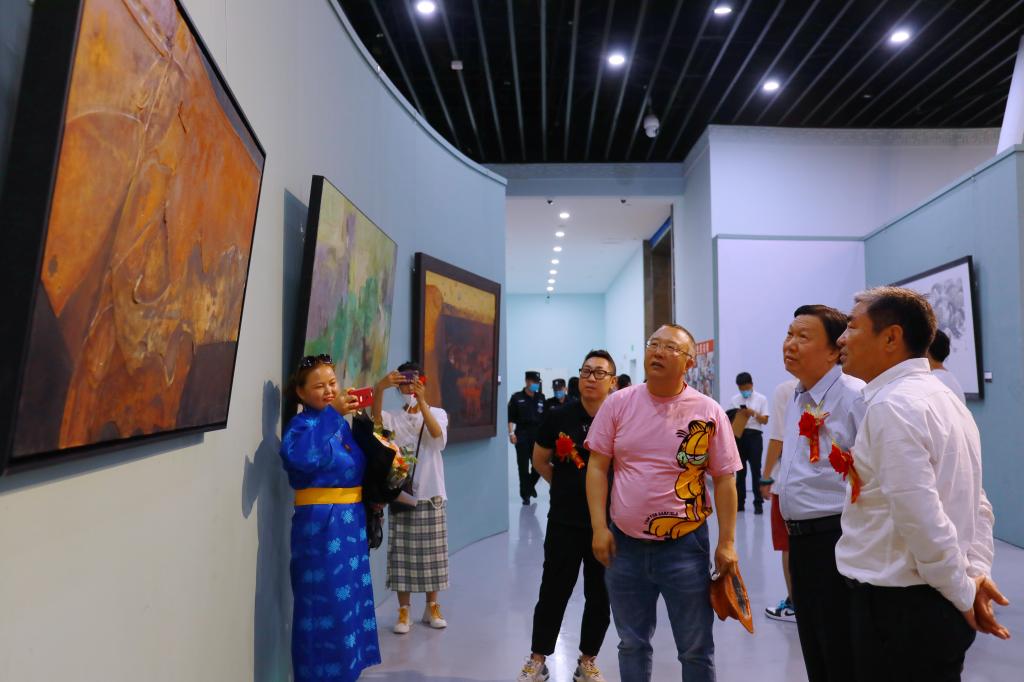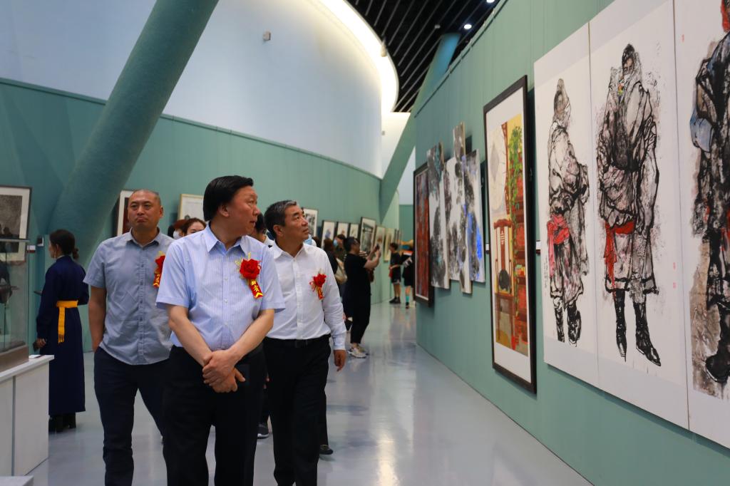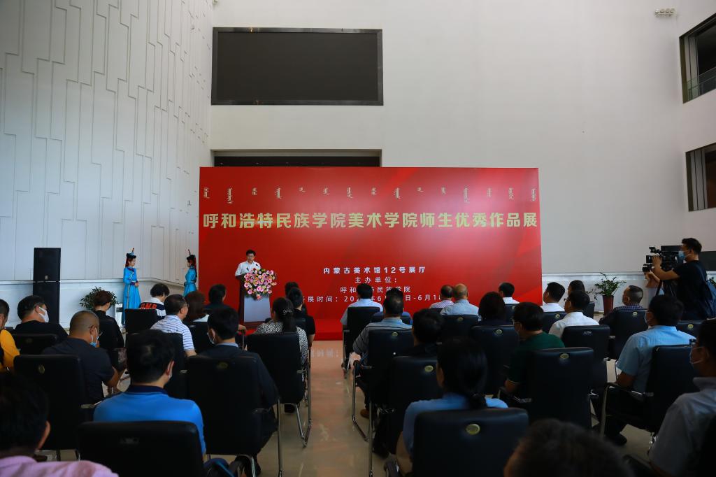 翰墨飘香歌盛世,丹青传神颂党恩。在迎接中国共产党成立100周年之际,6月15日上午,Beat365美术学院师生优秀作品展在内蒙古美术馆隆重开幕。内蒙古文联党组成员、副主席艺如乐图,内蒙古自治区政协常委、Beat365唯一官方网站原校长、内蒙古医科大学原党委书记白长明,内蒙古党委宣传部文艺处处长乌云格日勒,中国美术家协会理事、内蒙古美术馆馆长、内蒙古美术家协会副主席刘国旗,内蒙古美术馆副馆长、内蒙古美术家协会副秘书长柳迪,内蒙古开放大学党委委员、副校长贺希格吉雅,内蒙古师范大学工艺美术学院副院长、教授、硕士生导师刘永平,中国美术家协会水彩画艺术委员会委员、内蒙古师范大学美术学院教授、硕士生导师长海,呼和浩特职业学院美术学院副院长凯军,内蒙古师范大学美术学院教授、硕士生导师云希望,内蒙古艺术学院美术学院教授、硕士生导师颉元芳,校企合作单位北京东方智业文化发展公司副总裁李贵明,Beat365唯一官方网站原副校长哈斯朝鲁及学校领导出席开幕式,Beat365各部门、各二级学院主要负责人和师生代表约300余人参加了开幕式。开幕式由校党委委员、副校长韩伟新主持。