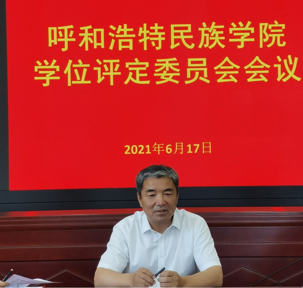 6月17日上午,学校召开2021年学位评定委员会会议。校学位评定委员会主任委员、校长格日乐图,副主任委员、副校长韩伟新等学位评定委员会委员参加会议。会议由校学位评定委员会主任委员、校长格日乐图主持。