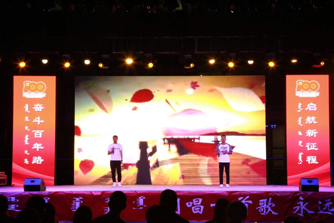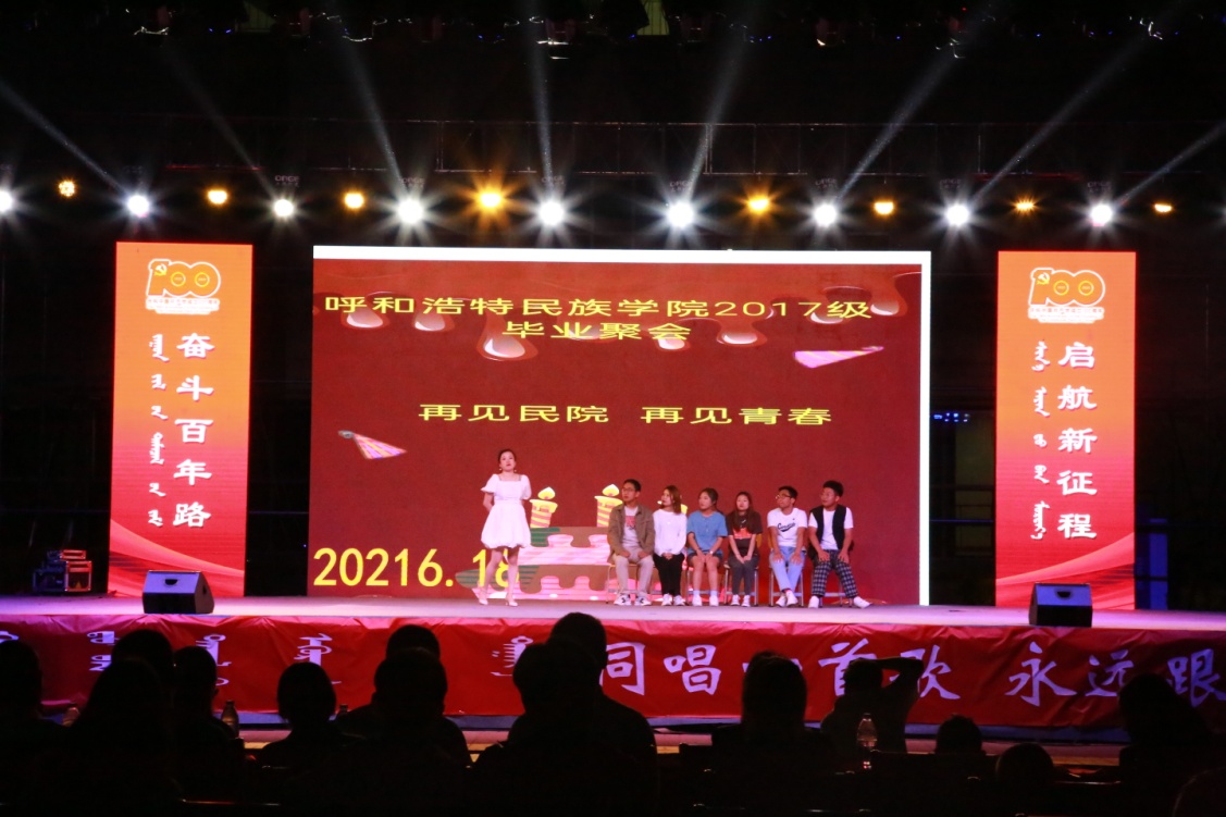 6月18日晚,由校团委主办、校学生会承办的“同唱一首歌 永远跟党走”呼和浩特学院2021届毕业生晚会在体育馆西侧隆重举行。校党委副书记胡春梅,校党委委员、副校长韩伟新,校党委委员、纪委书记、监察专员王冬梅,校党委委员、组织部部长吴阿古拉,校党委委员、党政办公室主任朝格吉乐图以及各二级学院、各职能部门师生代表4000余人共同观看了精彩纷呈的毕业生晚会。