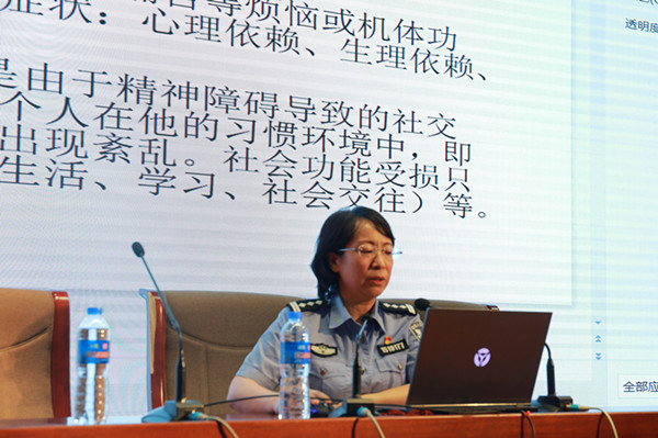 活动首先由赛罕强制戒毒所民警周洪洋、医生肖岩松及北京盈科律师事务所呼和浩特分所律师那木拉分别以《毒品的危害和防范》《毒品对人体的危害》《吸毒和贩毒所触犯的相关法律法规》为题,通过大量丰富的案例事实,向同学们介绍了毒品的种类、危害,吸食毒品的成瘾状态、临床表现以及吸毒贩毒所触犯的相关法律法规等内容,引导师生远离毒品,构筑禁毒的思想与行为防线。